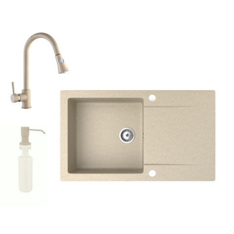 1 kép Gránit mosogató NERO Gold + kihúzható zuhanyfejes Snake csaptelep + adagoló (bézs)