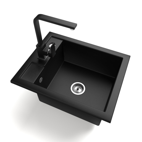1 kép Gránit Mosogató NERO Parma + Design csaptelep + adagoló + szifon (matt fekete)