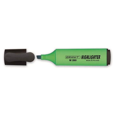 Szövegkiemelő, 1-5 mm, GRANIT M260, zöld -vágott hegy -lapos tolltest -élénk színek -vonalvastagság: 1-5 mm -a tinta színével megegyező tolltest