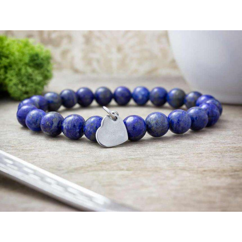Gravírozható szív acél medálos lápisz lazuli ásvány karkötő