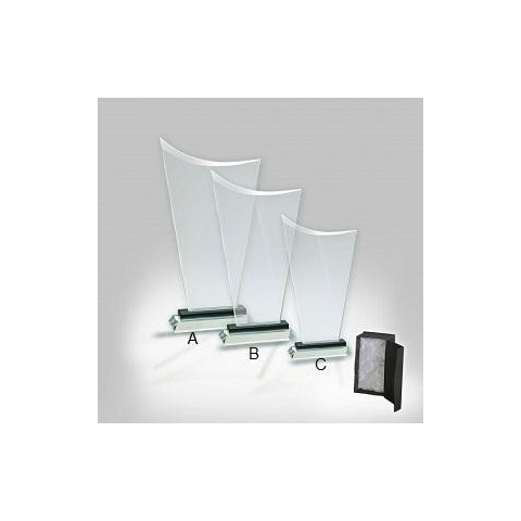 Az üveg plakett elegáns és modern megjelenésével tökéletes választás díjak, elismerések vagy emlékek átadására. Az üveg plakett felfelé szélesedik, amely dinamikus formát kölcsönöz neki, míg a homorúan íves felső rész finom lecsiszolt szélekkel zárul. Sta