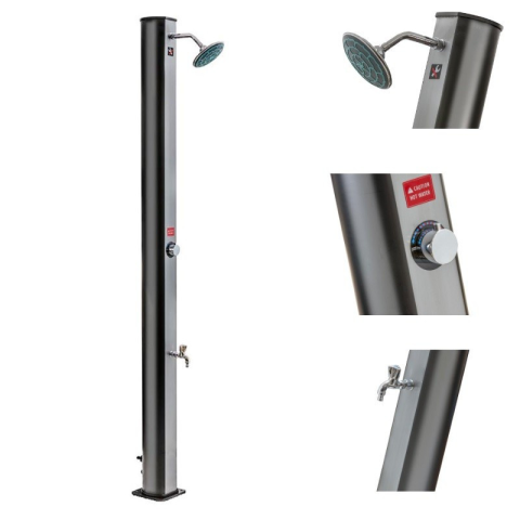 A 20 literes űrtartalommal rendelkező Gre PVC szolárzuhany egykaros hideg- és melegvíz-csappal felszerelt. Az állítható széles zuhanysugárral saját egyéni zuhanyozási élményéhez igazíthatja a zuhanyzót. Alkalmas kerti zuhanyzónak vagy kültéri zuhanyzónak,