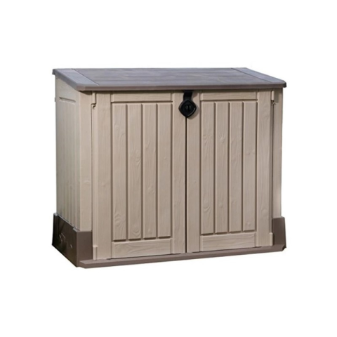 Használhatjuk medence gépházként - Kerti eszközök tárolására - Fa lambéria mintázatú műanyag box - Ferde nyitható tető - Két ajtós, középről két oldalra nyitható - Medence elektronika, időzítők, adagolók elhelyezéséhez - Medence homokszűrős szivattyú elhe