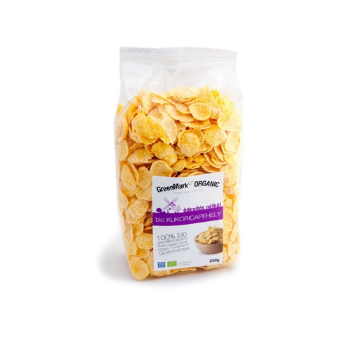Greenmark bio kukoricapehely 250gKíváló alapanyaga az egészséges reggelinek. Ásványi anyagok: kálcium, vas, kálium, foszfor, magnézium, nátrium. Vitaminok: A, B1, B2. Jótékony hatással van: egészségvédő. Felhasználása: fogyasztható magában, reggelire müzl