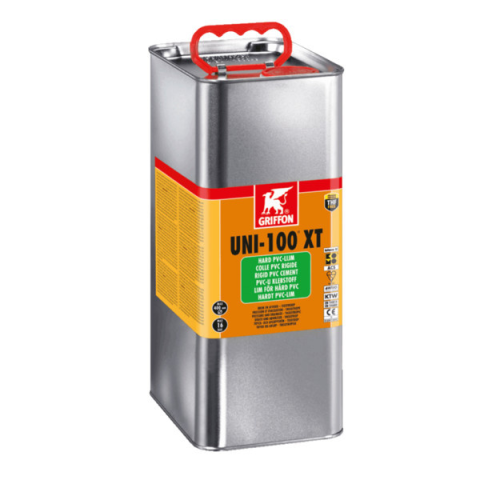 Griffon UNI-100XT THF mentes ragasztó kemény PVC-hez, nyomás- és elvezető rendszerhez. Csőcsatlakozások, szerelvények, fittingek ragasztásához, nyomott és laza illeszkedés esetén is - réskitöltéshez. Alkalmazási terület: Csőcsatlakozások, szerelvények