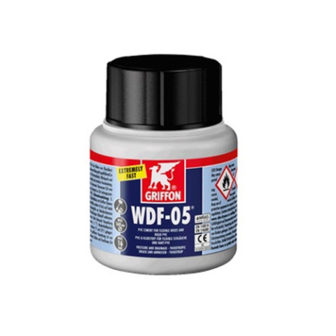 Griffon WDF-05 PVC ragasztó – Flexibilis PVC csövekhez, maximális tartóssággal - 250ml A Griffon WDF-05 egy speciális összetételű PVC ragasztó, melyet rugalmas PVC csövekhez terveztek. Ideális választás nyomás alatti és elvezető rendszerekhez, akár nehez