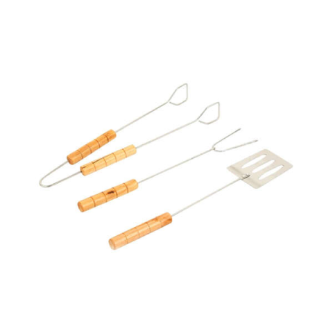 A Grillező eszköz szett jellemzői: A készlet kiváló minőségű rozsdamentes acélból készült, és biztosítja a hosszú használatot. Fa fogantyú csúszásgátló profilozással. Az ergonomikus kialakítású csipesz segítségével könnyedén megfordíthatod a húst és a zöldségeket a grillen. A szilárd, éles szélű spatula lehetővé teszi az ételek könnyű felemelését, áthelyezését és eltávolítását a grillről. Ellenáll a magas hőmérsékletnek. Az acél felül