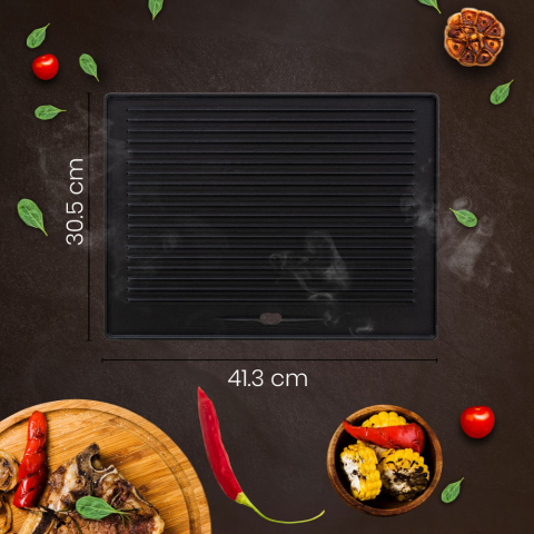 1 kép Grilltálca kétoldalas grill lap 41,3x30,5 cm antracit öntöttvas 161579645