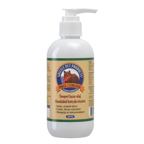 Alaszkai nyílt tengeri lazac olaj kutyák és macskák részére. Tiszta, teljesen természetes termék. A Grizzly Lazac Olaj egy nagyszerű, tiszta termék, amely étel minőségű alaszkai nyílt tengeri lazacokból származik. A Grizzly Lazac Olaj nagy mennyiségben