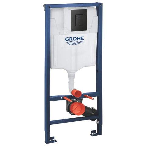 Rapid SL 3 az 1-ben WC-szett, 1,13 m építési magassággal, a csomag tartalmazza a rejtett RAPID SL modult, a Even gombot (fantomfekete) és rögzítőcsavarokat a falra szereléshez.
