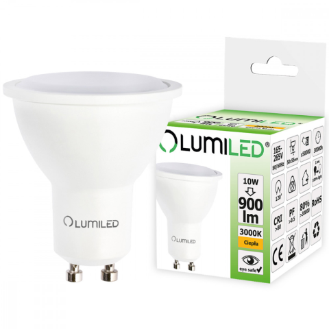 1 kép GU10 LED izzó 10W = 80W 900lm 3000K meleg 120° LUMILED