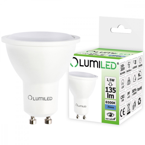 1 kép GU10 LED izzó 1.5W = 15W 135lm 6500K Hideg 120° LUMILED