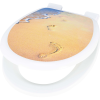 A Guanaco WC-ülőke polipropilénből készült, és műanyag zsanérokkal rendelkezik. A Quick Realease funkciónak köszönhetően az ülőke az optimális tisztítás érdekében levehető. A leeresztő automatika a fedelet lassan és gyengéden csukja le. A WC-ülőke 100 kg-ig terhelhető. Felületét tengerparti életkép - lábnyom a homokban - díszíti. A csomag tartalmazza a WC-csészéhez történő rögzítéshez szükséges anyagot.