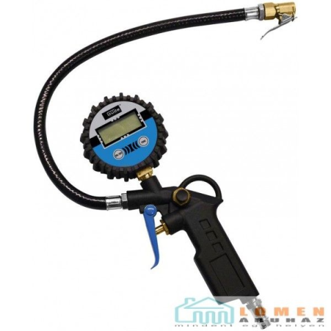 Csatlakozó menet: 1/4 |Max. Üzemi nyomás: 7 bar|Tömlő hossza: 0,365 m|Akkumulátor típusa: 2 * AAA|Méretek LxWxH: 255 x 110 x 35 mm|Nettó tömeg: 0,35 kg|Bruttó súly: 0,396 kg • kiváló minőségű gumiabroncs-felfújó készülék 4 számjegyű digitális kijelzőve