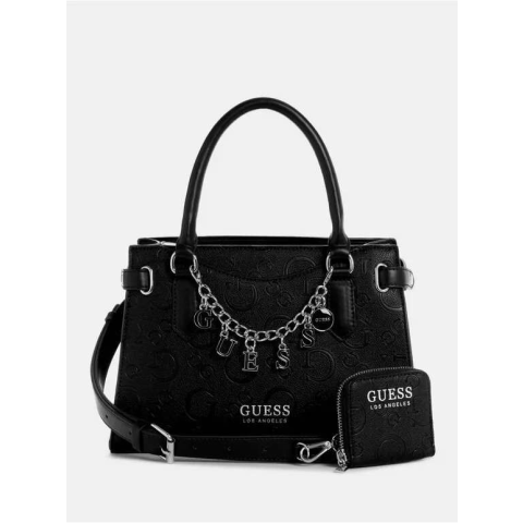 GUESS Amarantha Fekete Eko Bőr Kistáska Pénztárcával és Kulcstartóval 👜 A GUESS Amarantha kistáska stílusos és praktikus választás a mindennapokra. Ez a fekete, eko bőrből készült táska nem csak divatos, de környezetbarát is. A hozzá tartozó pénztárc...