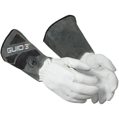 GUIDE 1270 Munkavédelmi kecskebőr hegesztő kesztyű 10 Hegesztőkesztyű tartós és puha fedett kecskebőrből a tenyérrészen és a kézfejrészen. TIG hegesztéshez alkalmas. A csuklórész hasított marhabőrből, belül vékony pamutszövetből, a varratok pedig hőál