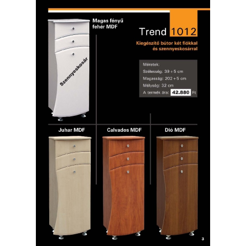 GUIDO TREND 1012 Fürdőszobaszekrény szennyeskosárral fürdőszoba bútor árgrafikon