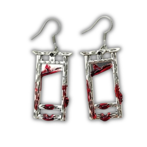 A morbid Guillotine fülbevaló ideális Halloween ékszer abszolút bevállalósoknak. Fémötvözet, vért szimbolizáló díszítéssel a drámai hatásért