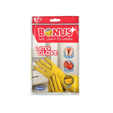 A BONUS háztartási latex gumikesztyű védelmet, extra higiéniát és kényelmet nyújt a háztartási feladatok elvégzéséhez. Méret: XL