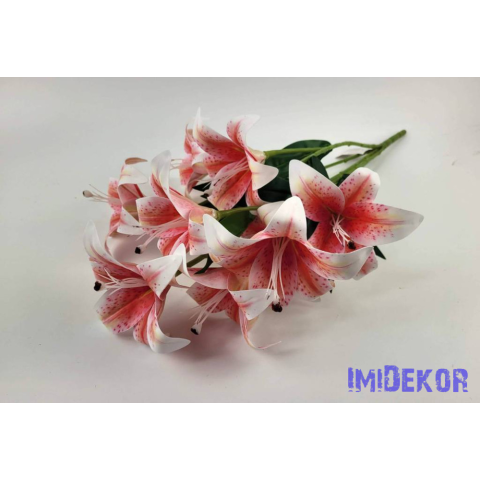 1 kép Gumis liliom 9 ágú csokor 56 cm - Fehér-Pirosló