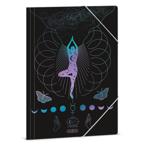 Gumis mappa ARS UNA A/4 Mystic Constellation A/4 méretű gumis dosszié iratok, füzetek tárolására. 350 gr-os vastag kartonból készült dosszié lekerekített első sarkokkal, színes gumi zárópánttal. Külseje négy színnel, fényes fóliával nyomott. Belső olda