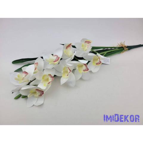 1 kép Gumis mű cymbidium orchidea levéllel 54cm - Fehér