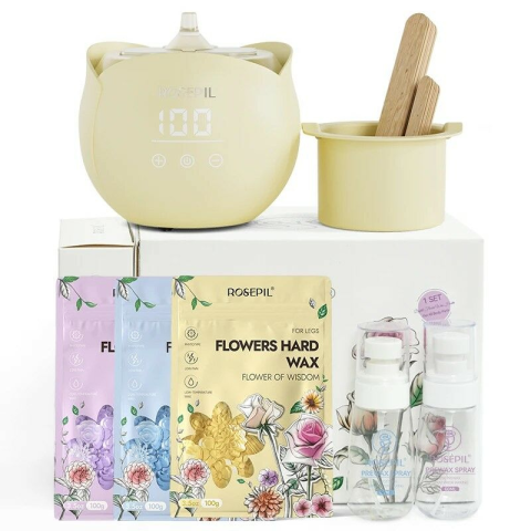 ROSEPIL gyantázó szett: Könnyű és hatékony szőrtelenítés otthon 🌸 Ez a ROSEPIL gyantázó szett tökéletes a gyors és hatékony szőrtelenítéshez otthonod kényelmében. A modern, virág alakú digitális melegítő, pasztell színekben kapható, könnyen használha...