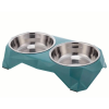 1 kép Gyémánt alakú műanyag és rozsdamentes acél dupla etetőtál kutyáknak és macskáknak, kék