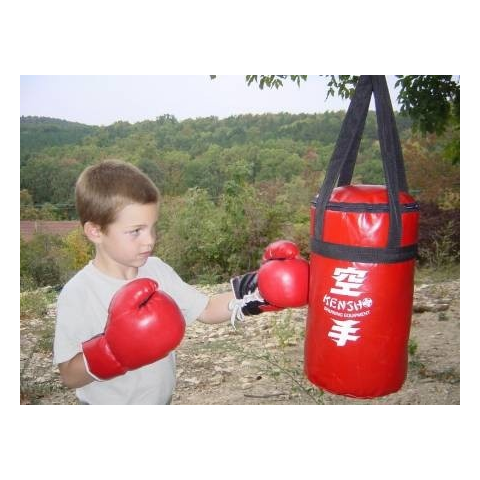Kifejezetten gyerekeknek ajánlott boksz szett, amely egységcsomagot tartalmaz: 1 db 40×20 cm-es, kb. 3,8 kg súlyú erősített műbőr bokszzsákot, valamint egy gyerek bokszkesztyűt változó kivitelben (6/8/10 uncia).