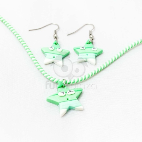 Fashion Gyerek ékszer szett csillagos - zöld Kedves gyerek ékszer szett. Anyagának köszönhetően tartós gyermek ékszer, mely a legelevenebb kis angyalok nyakában és fülében is kiállja az idő próbáját. A csillag medál és fülbevaló kedves, játékos kialakítása illetve vidám színei miatt kislányod bármely öltözékéhez illeni fog. Meseszerű ajándék lehet ovis ballagásra is!A csillag az örökkévalóságot, a halhatatlanságot és a reményt fejezi ki. Égi jelleg