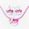 Fashion Gyerek ékszer szett figurás - pink Kedves gyerek ékszer szett. Anyagának köszönhetően tartós gyermek ékszer, mely a legelevenebb kis angyalok nyakában és fülében is kiállja az idő próbáját. A figurás medál és fülbevaló kedves, játékos kialakítása illetve vidám színei miatt kislányod bármely öltözékéhez illeni fog. Meseszerű ajándék lehet ovis ballagásra is!A lánc hossza: 38 cmA medál mérete: 3x3 cmA fülbevaló mérete: 2x3 cmAz ár 1 db ékszer
