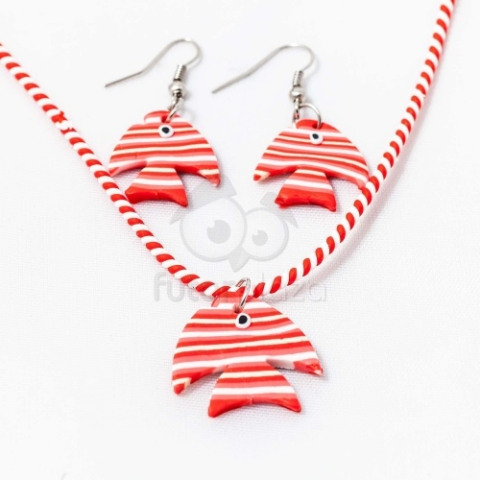 Fashion Gyerek ékszer szett halacskás - piros Kedves gyerek ékszer szett. Anyagának köszönhetően tartós gyermek ékszer, mely a legelevenebb kis angyalok nyakában és fülében is kiállja az idő próbáját. A halacska medál és fülbevaló kedves, játékos kialakítása illetve vidám színei miatt kislányod bármely öltözékéhez illeni fog. Meseszerű ajándék lehet ovis ballagásra is!A hal, mint csillagjegy a tizenkettedik állatövi jegy (02.19-03.20). Vízjegy. A krisztus