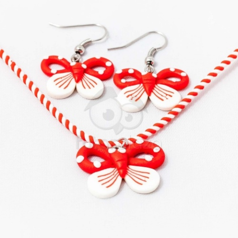 Fashion Gyerek ékszer szett pillangós - piros Kedves gyerek ékszer szett. Anyagának köszönhetően tartós gyermek ékszer, mely a legelevenebb kis angyalok nyakában és fülében is kiállja az idő próbáját. A pillangó medál és fülbevaló kedves, játékos kialakítása illetve vidám színei miatt kislányod bármely öltözékéhez illeni fog. Meseszerű ajándék lehet ovis ballagásra is!A pillangó a szépség, az átváltozás és a tiszta lélek szimbóluma. A kínai hagyom