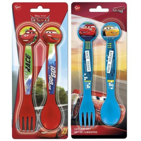 CARS motívummal díszített műanyag gyermek evőeszköz készlet. A készlet tartalma: villa 16 cm, kanál 16 cm.