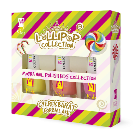 A biztonságos, gyerekbarát Moyra Kids körömlakk mesés, szett, ami igazán varázslatosan és színes Lollypop Collection válogatás. A három különböző színű körömlakk kollekció a legközkedveltebb árnyalatokból összeállított válogatás egy színpompás díszdobozb