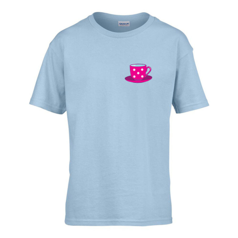 Gyerek póló Ovis jelel Rózsaszín pöttyös bögre mintával Világos kék 122 méret