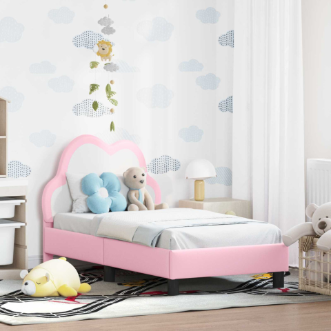 Gyerekágy keret fejtámlával Rózsaszín 70 x 140 cm PU gyermekbútor árgrafikon
