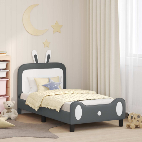 Gyerekágy kerettel fejtámlával Világosszürke 80 x 160 cm PU gyermekbútor árgrafikon
