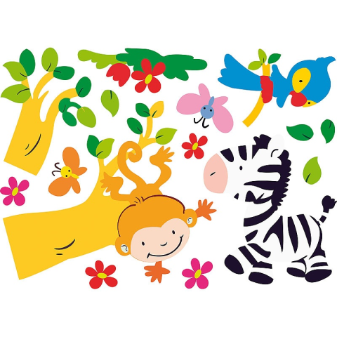 Díszítsd fel te is gyermeked szobáját színese matricákkal. Nincs más dolgod csak fogni ezt a néhány falmatricát és felsimítani a falra őket és a szoba máris megtelik színekkel, állatkákkal és melegséggel.