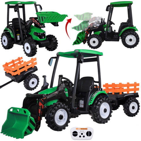 1 kép Gyermek elektromos traktor pótkocsival és funkcionális kanállal 24V zöld