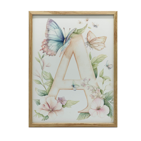 Gyerek Plakat - A betű virágokkal és pillangókkal - 70x100 cm-es alumínium keretben Ez a gyönyörű, 70x100 cm-es falikép tökéletes kiegészítője lesz gyermeke szobájának! A nagy A betűt gyönyörű virágok és színes pillangók veszik körül, egyedi és vidám...