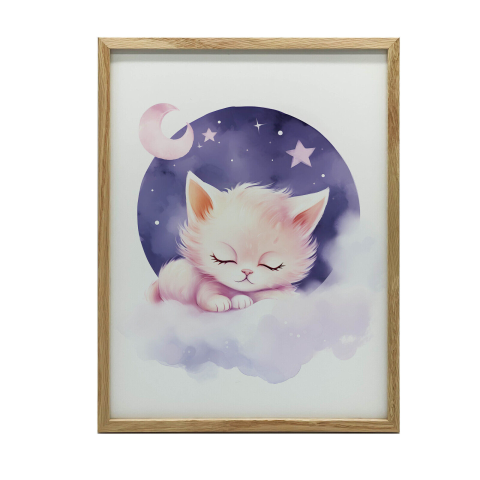 1 kép GYERMEKEKNEK 50x70 VÁSZON VÁSZON FESTŐ ALVÓ CICKA RÓZSASZINTŰ FELHŐN
