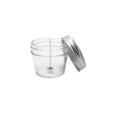 Gyertyának való kanócos üveg, amely praktikus csavaros kupakkal van ellátva. A megüresedett tégelyt, alaposan kimosva később remek tárolója lehet a krémeknek, kencéknek vagy egyéb alapanyagoknak.