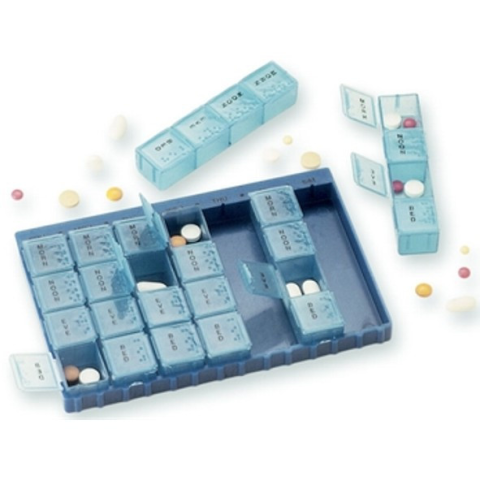 - Heti gyógyszeradagoló - 7 x 4 rekeszes dobozok (reggel, délben, este és éjszaka) - Szín: áttetsző - Méret: 17 x 12 x 2 cm - egy napi rész mérete: 10x2,3 cm - egyetlen gyógyszertartó fakk mérete: 2x2,5 cm és amélysége: 1,5 cm - a csomagban jár magyar önt