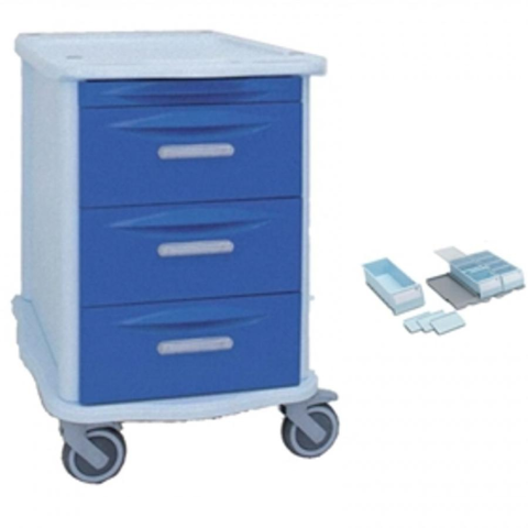 Gyógyszerosztó kocsi 3 nagy, 30 kis fiókkal