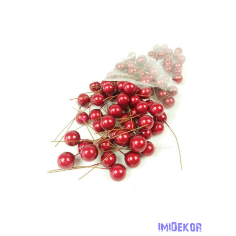 Gyöngyházas drótos 1,5cm bogyó kb 75db/csomag - Bordó dekorációs kellék 1 kép