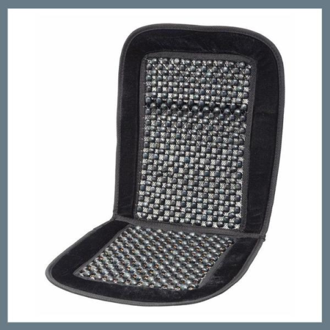 Gyöngyös ülésvédő párna szegéllyel – fekete, 93 × 44 cm 04108Univerzális kialakítású, légáteresztő gyöngyös ülésvédő párna, amely a legtöbb szabványos autóüléshez egyszerűen rögzíthető vagy lehelyezhető.Főbb jellemzők:Fekete színű, szegéllyel megerősített kivitelFából készült gyöngyökből álló felület – kényelmesen masszírozza a hátat és fenntartja a levegőáramlástJavítja a vérkeringést, csökkentheti a fáradtságot és a hátfájá