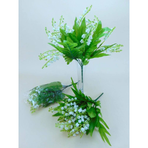 1 kép Gyöngyvirág 7 ágú selyemvirág díszítő csokor 33 cm