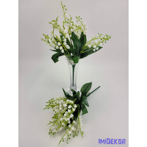 Gyöngyvirág 7 ágú selyemvirág díszítő csokor 35 cm