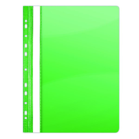 Gyorsfűző DONAU A/4 műanyag lefűzhető zöld Klasszikus PVC gyorsfűző dokumentumok nyilvántartásához átlátszó, narancsos fedlappal, színes hátlappal, kivehető, kétoldalas, feliratozható oldalcsíkkal. A 11 lyukas lefűzőcsíkjának köszönhetően bármilyen ira